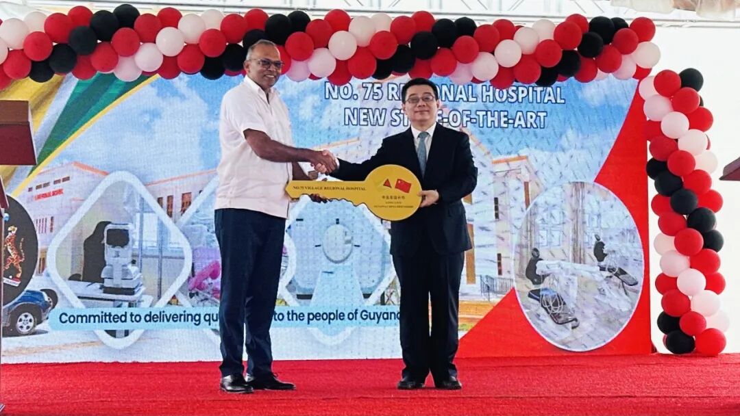 閆海祿副總經(jīng)理代表中工國(guó)際將象征醫(yī)院正式移交的金鑰匙親手交予安東尼部長(zhǎng)。這把金鑰匙不僅是醫(yī)院運(yùn)營(yíng)權(quán)的象征,更是搭建中圭合作橋梁的見(jiàn)證。他在致辭中誠(chéng)摯地感謝圭亞那衛(wèi)生部及各級(jí)政府、中國(guó)駐圭亞那大使館、中國(guó)信保、中國(guó)建設(shè)銀行以及所有合作伙伴在項(xiàng)目實(shí)施過(guò)程中給予的大力支持和幫助。該醫(yī)院群項(xiàng)目充分體現(xiàn)了公司協(xié)同共贏理念——通過(guò)整合國(guó)內(nèi)外優(yōu)質(zhì)資源,構(gòu)建跨區(qū)域、跨領(lǐng)域的合作生態(tài),為海外民生工程提供系統(tǒng)解決方案。